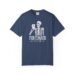 A relaxed, garment-dyed tee that feels lived-in from the first wear. Soft 100% ring-spun cotton and a medium-weight knit give this shirt a gentle drape and muted, vintage-like color that ages beautifully. Front artwork shows a casual skeleton raising a coffee cup with the words “Fortunato Fan Club,” while the back carries a warm latte-heart and the phrase “Between Friends Coffee.” It’s the kind of shirt you pull on for slow mornings at the café, for meeting a friend at a corner table, or for evenings when conversation and caffeine stretch into something like ritual. The fit sits relaxed without being boxy, and the tubular knit keeps the silhouette clean. Available in many colors and sizes, this tee keeps a handmade, small-batch vibe thanks to garment dyeing and sturdy double-needle construction.