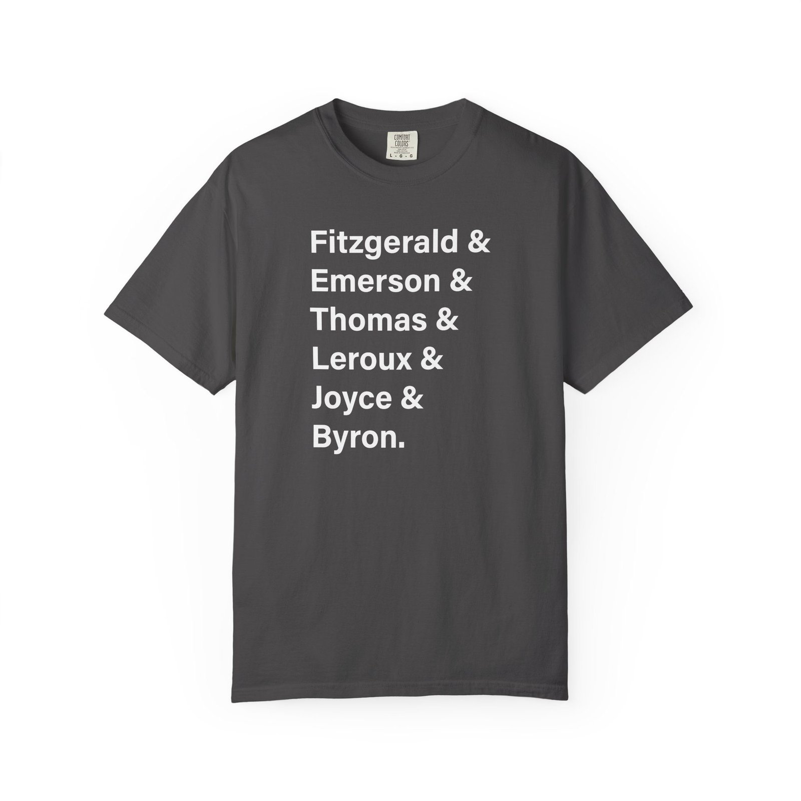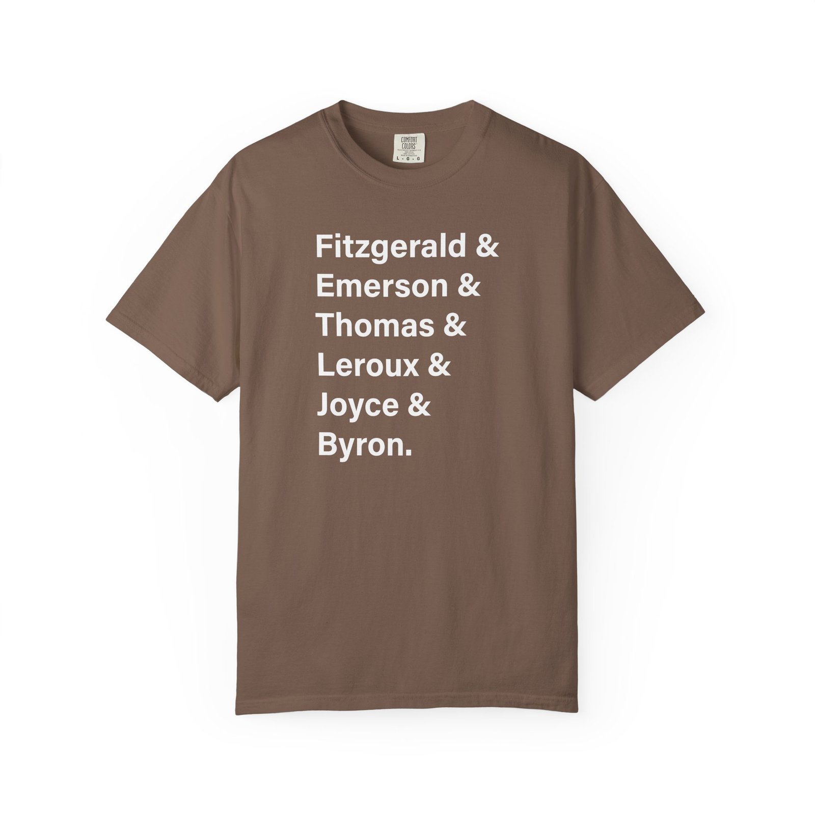 Literary Authors & Coffee T-Shirt — Fitzgerald, Emerson, Thomas, Leroux, Joyce, Byron
