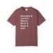 This garment-dyed tee brings quiet literary energy to everyday life. Soft, worn-in color and a relaxed cut make it a go-to for slow mornings with a book and a good cup of coffee. The front lists beloved authors in bold, clean type — a simple declaration for readers who like to start conversations without shouting. The back’s latte-heart and “Between Friends & Coffee” script feels warm and familiar, like a local café where stories are traded across the table. Wear it to readings, study sessions, or casual meetups; it sits comfortably in the background while your words and company take center stage.