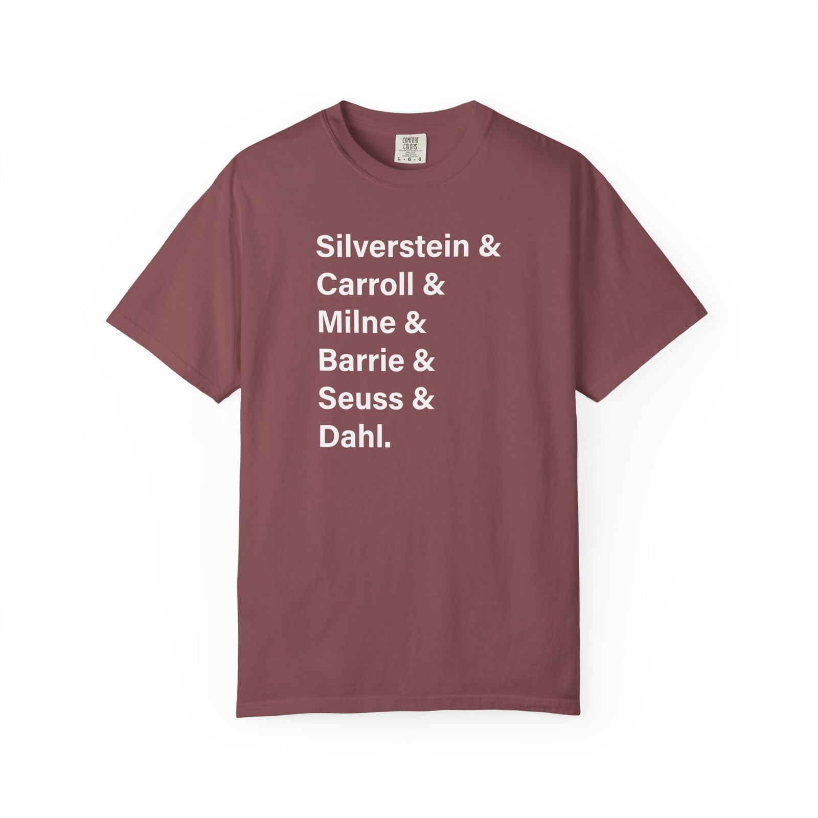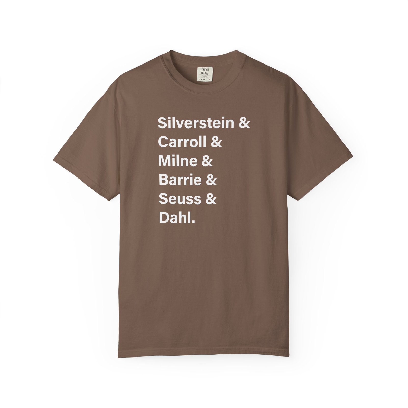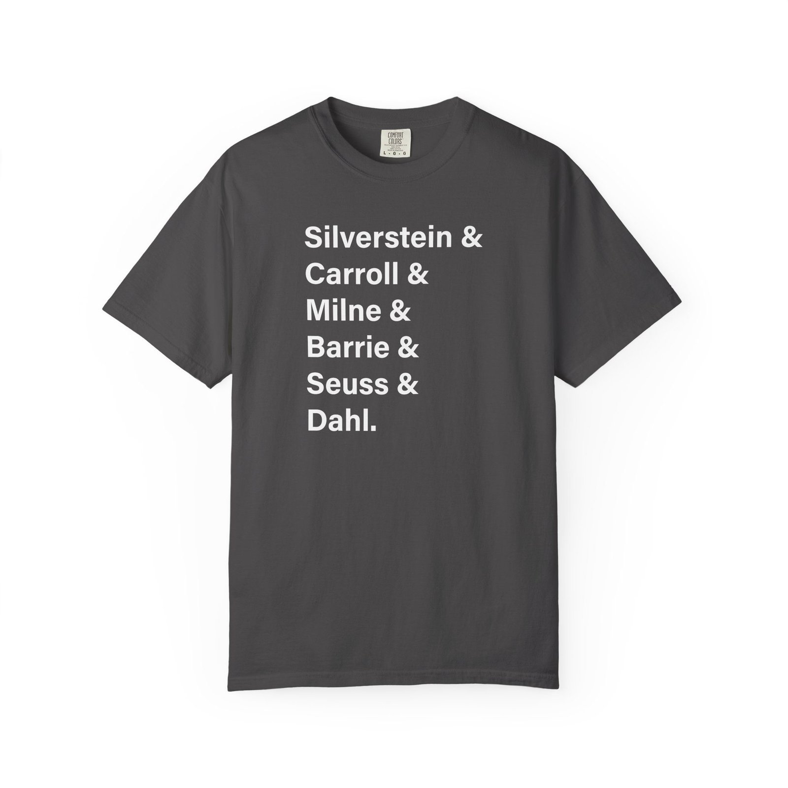 Literary Authors & Coffee T-Shirt — Silverstein, Carroll, Milne, Barrie, Seuss, Dahl